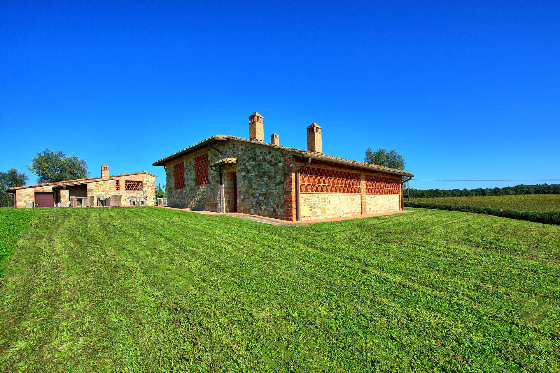 Fornacino offers a wonderful pool to spend moments of leisure with friends, a big garden for the open air days that makes fantastic your stay in the warm seasons. This property has been carefully restored and turned into 6 comfortable apartments, all of which offering nice interiors furnished in a rustic style with some antiques. The location, among vineyards and olive groves is peaceful and dominates the Chianti Classico hills. Beautiful panoramic views with Siena in the distance are afforded. This property provides a well-kept large garden (6000 m2) with infinity pool whose use is to be shared among the 6 apartments.