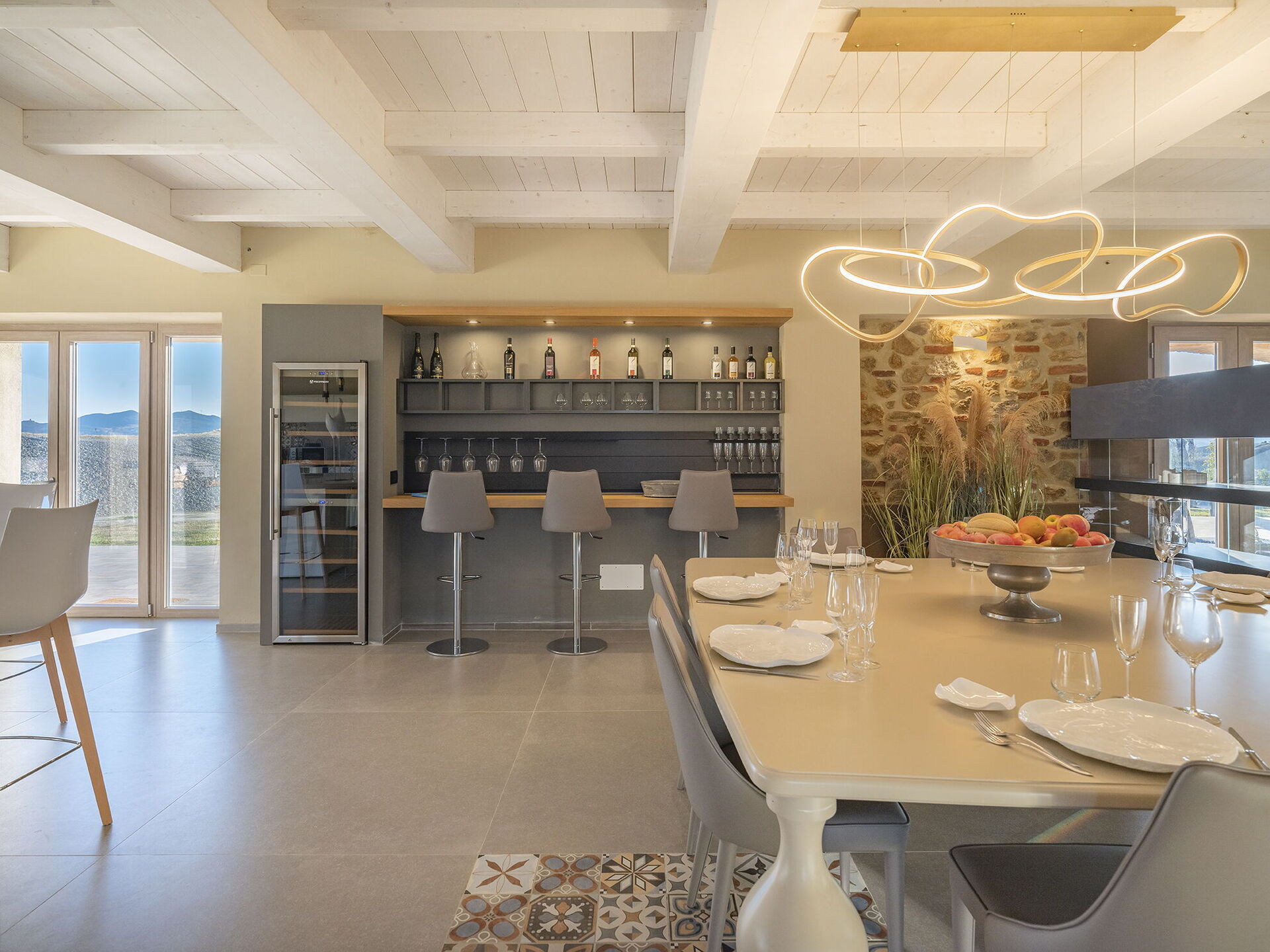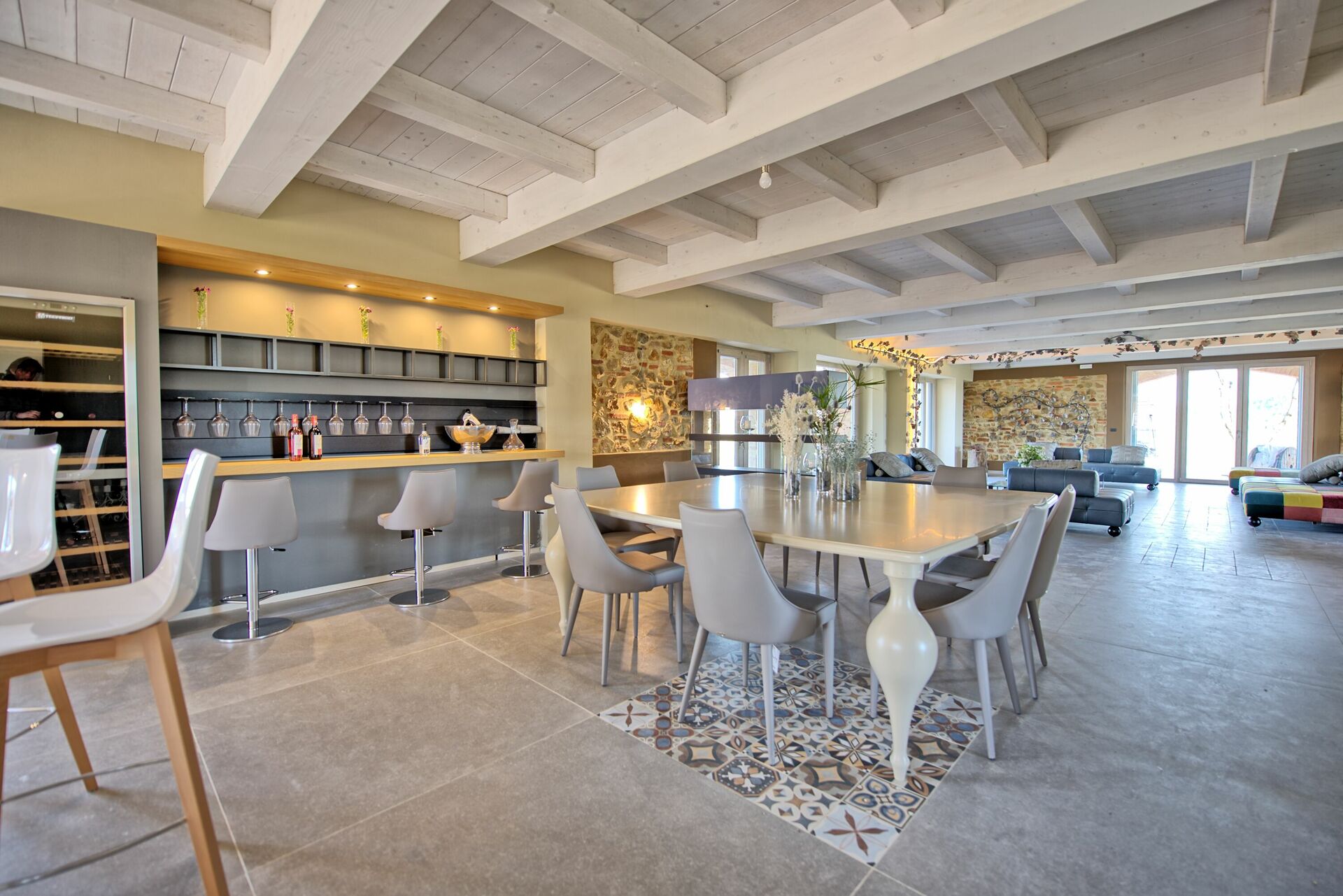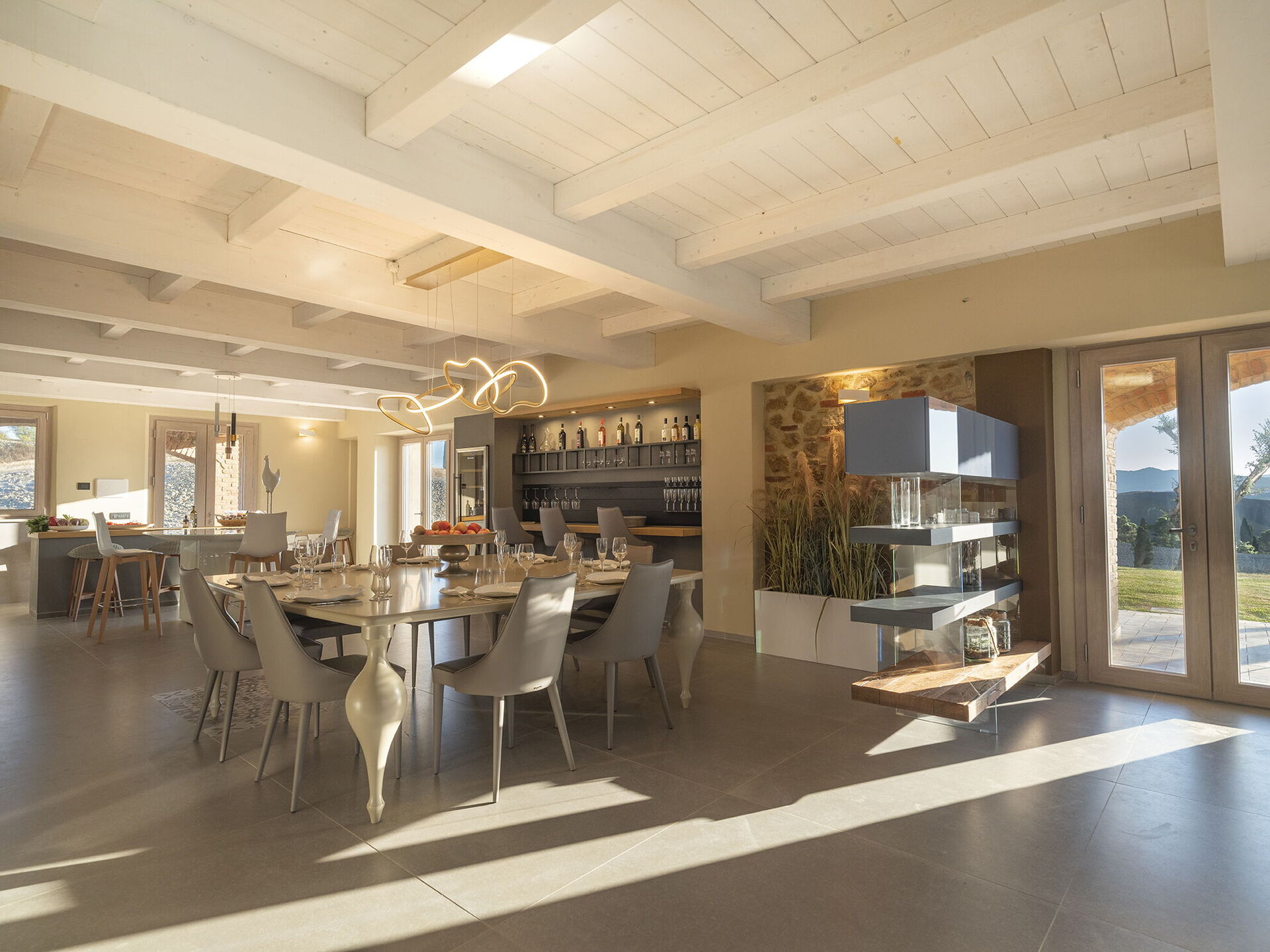 Inside, the modern villa is elegantly furnished; outside it offers large spaces for relaxing and having fun, such as the large pool with sun deck, a lovely barbecue area, a fire pit and expansive green spaces.