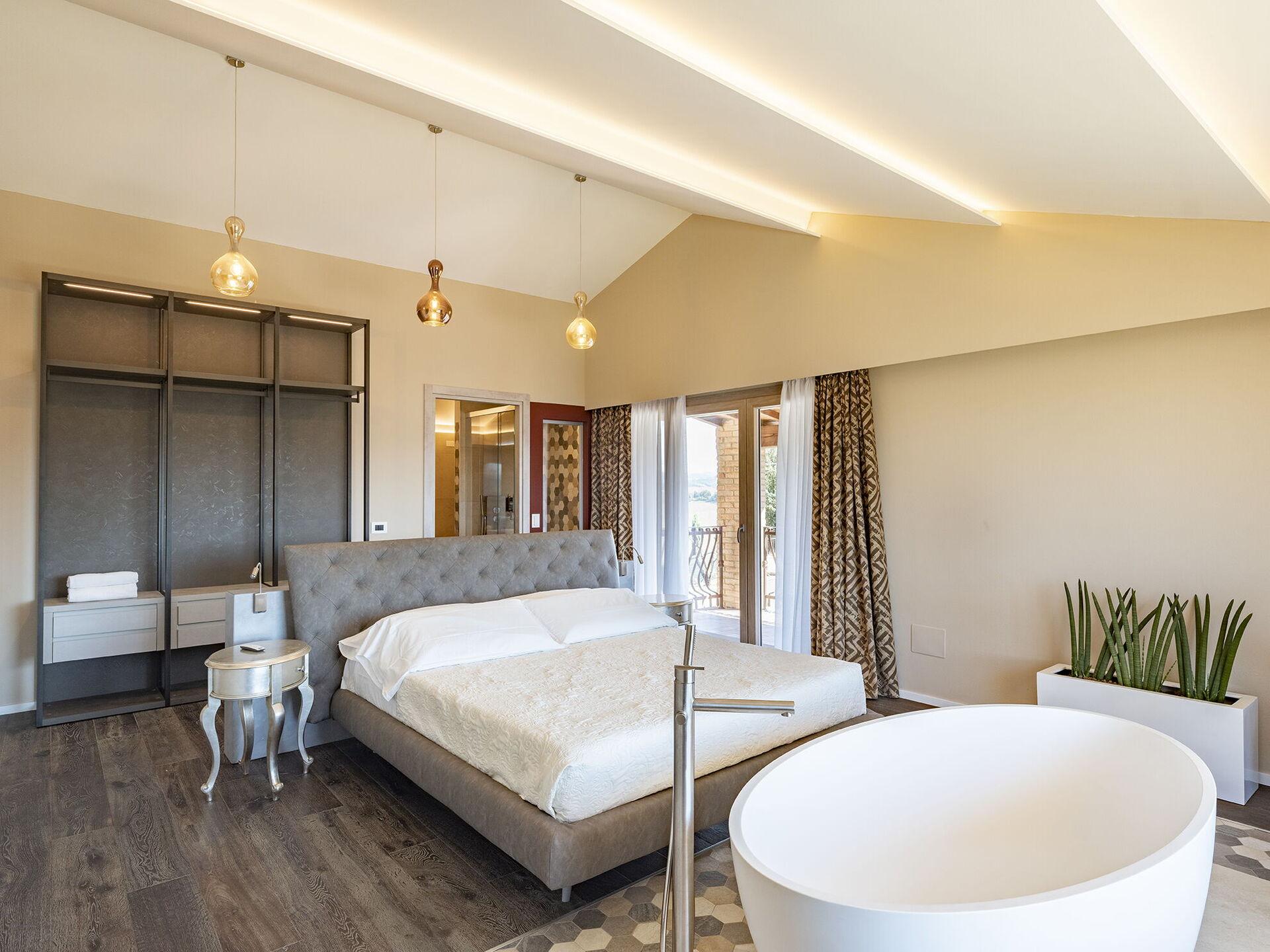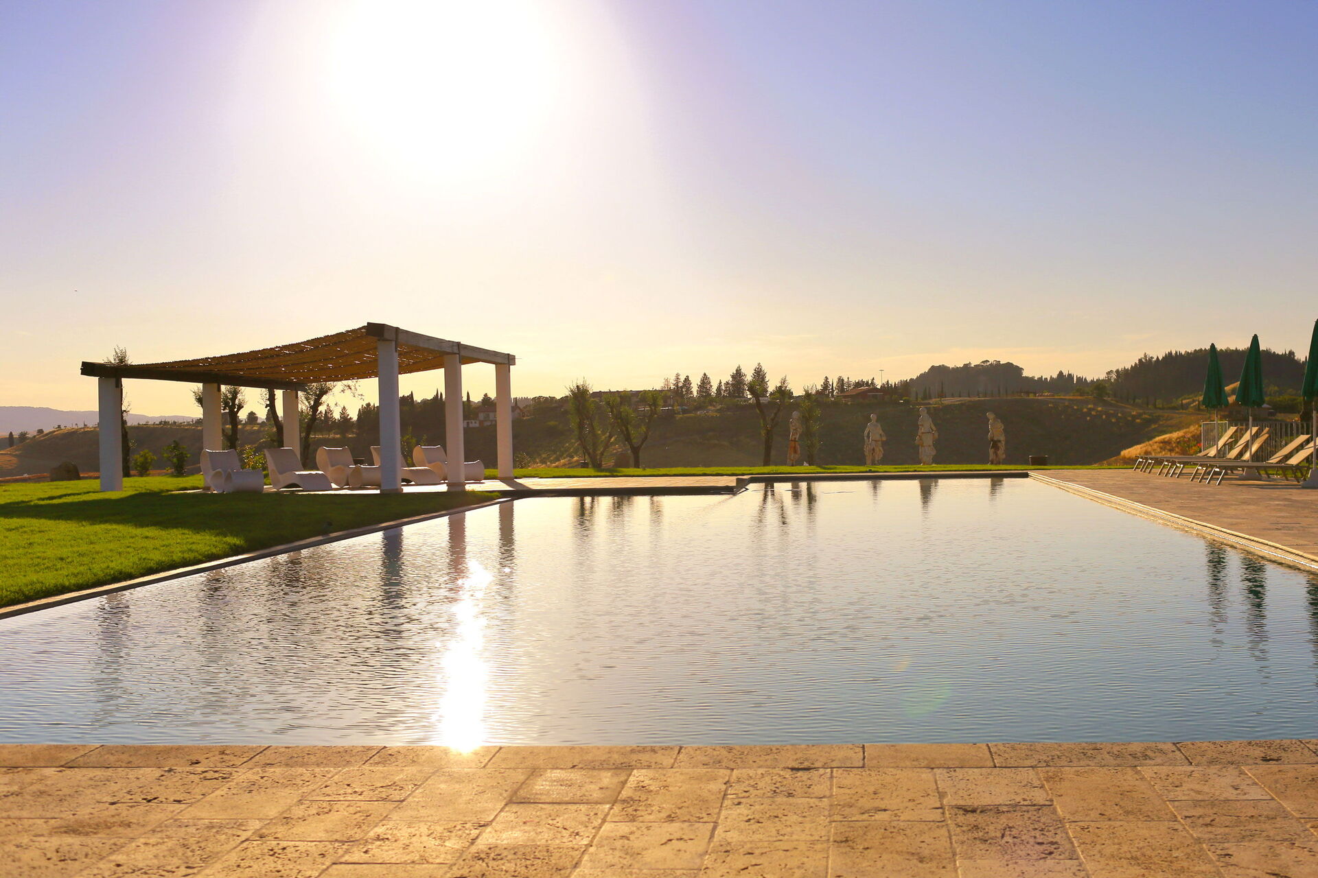 This marvelous luxury villa with expansive private pool lies in the splendid Valdera area, just kilometers from Volterra. It offers 6 bedrooms, 6 bathrooms and various furnished outdoor spaces for enjoying the views and splendid locale. Located on a hill with beautiful views, it has a grand pool facing a lake and the hills of the owner’s extensive farm.