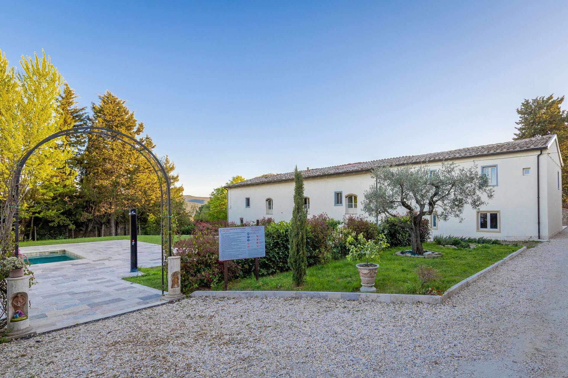 We had a wonderful time at Borgo Ariano. A beautifully restored house with a large pool, quiet, clean, and fantastic! The owners and their staff are very friendly; it's like being in a family. It's a great base for trips to the sea (50 km away), Siena, Voltera, or San Gimignano. We highly recommend it and would go back.