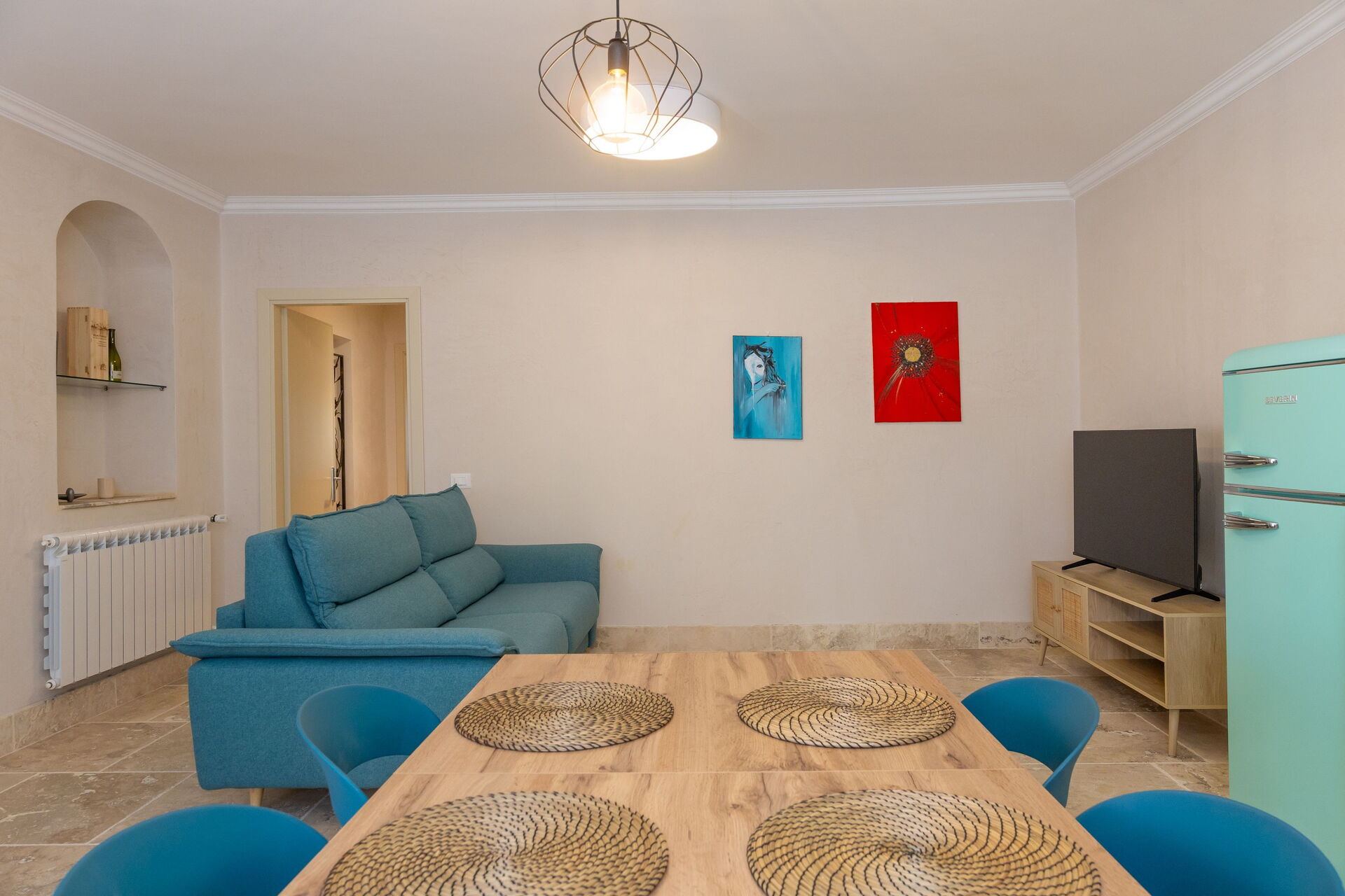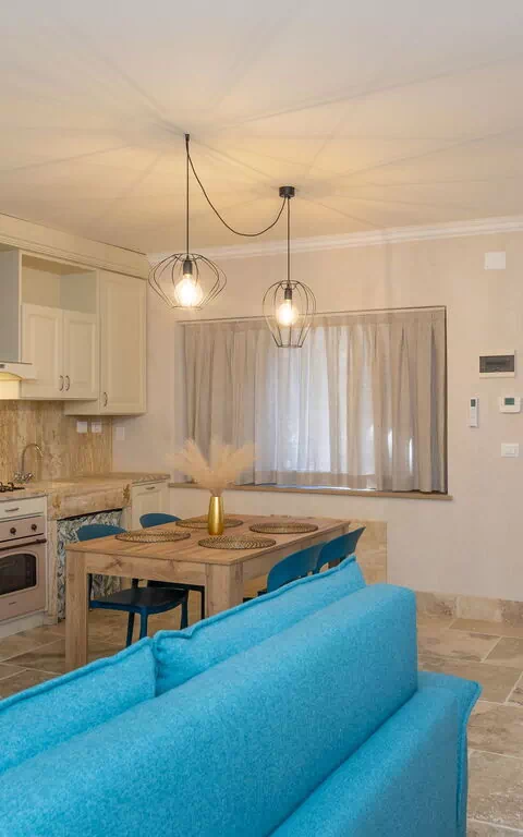 Raised ground floor: living room (smart TV, air conditioning) with double sofa bed, dining area and kitchenette (dishwasher, oven, refrigerator, espresso coffee maker, toaster), double bedroom (air conditioning), bathroom with shower.