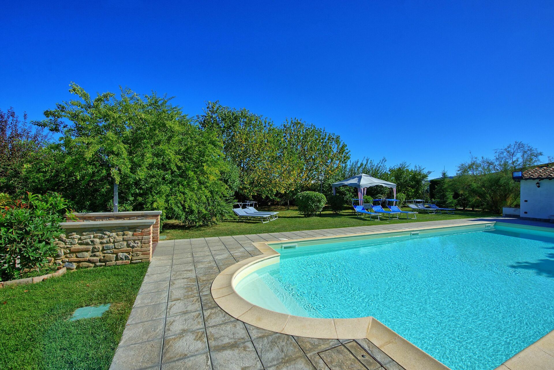 Large farmhouse for rent with private swimming pool and beautiful garden, located on the border between Tuscany and Umbria.