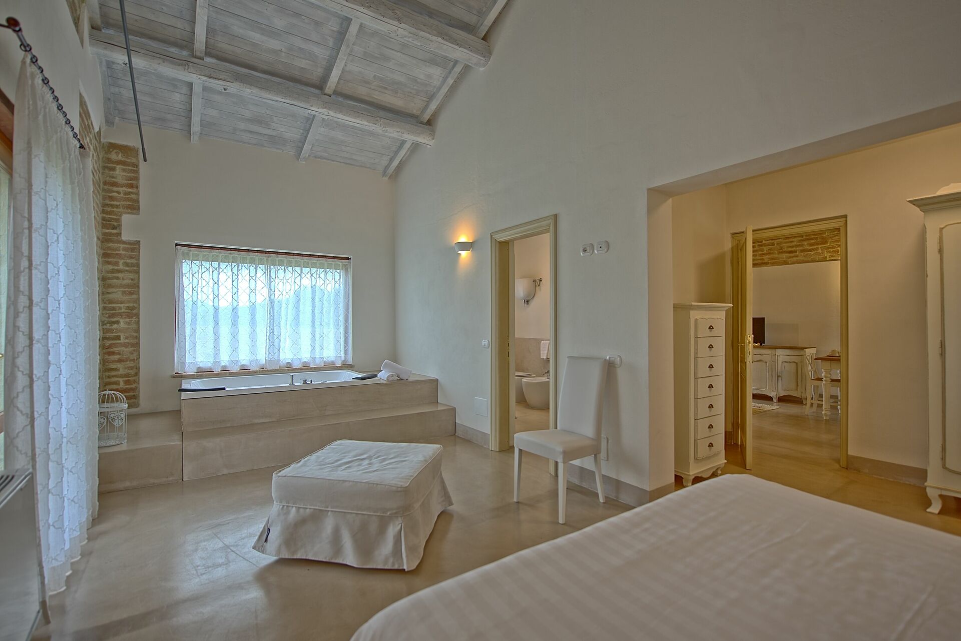 Villa Apollinare offers a beautiful pool, outdoor spaces furnished for al fresco dining, and a spa with whirlpool tub, sauna, steam room, and sensory shower.