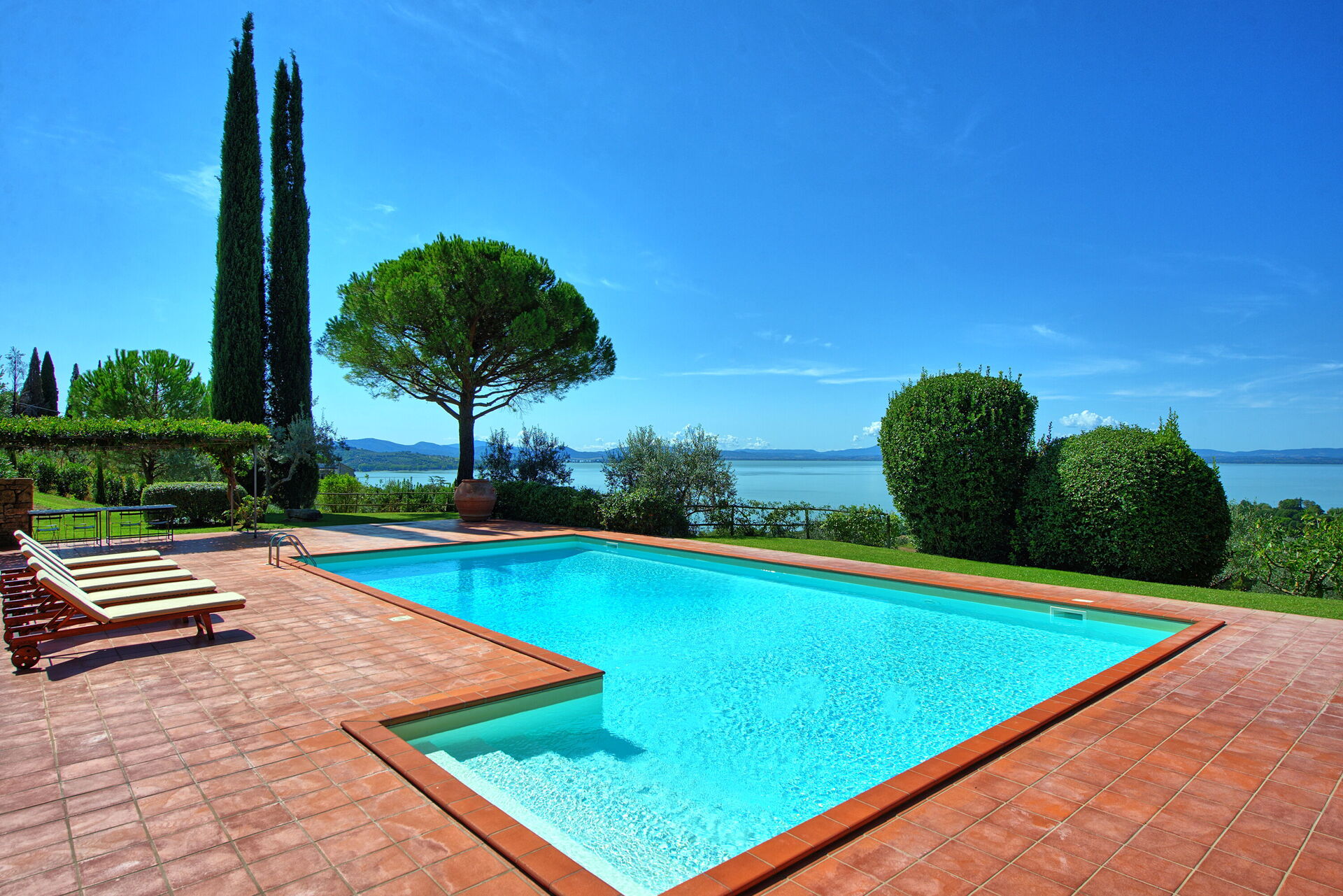 Villa Le Murate offers a beautiful pool to live hours of relax with family and friend, a spacious garden for the outdoors days equipped with a barbecue area which enhances your summer feasts, a lovely fireplace which makes the ambience warmer and comfortable on colder days. This villa, situated on a hill slope near lake Trasimeno, enjoys amazing views over the lake and its islands and the gentle green hills of Umbria in the distance. The interiors are welcomingly and nicely furnished in the 70' style (the lower floor is simpler) and the outside areas offer a large terraced garden with pool and a nice pergola with barbecue.