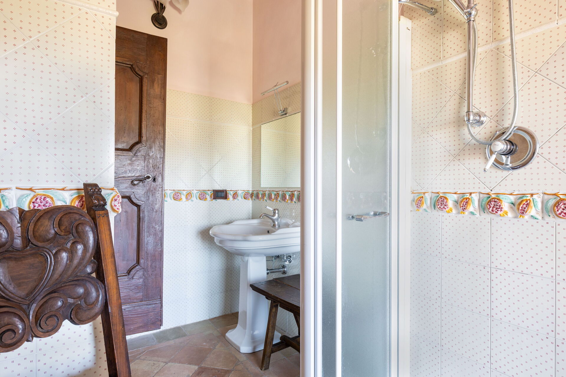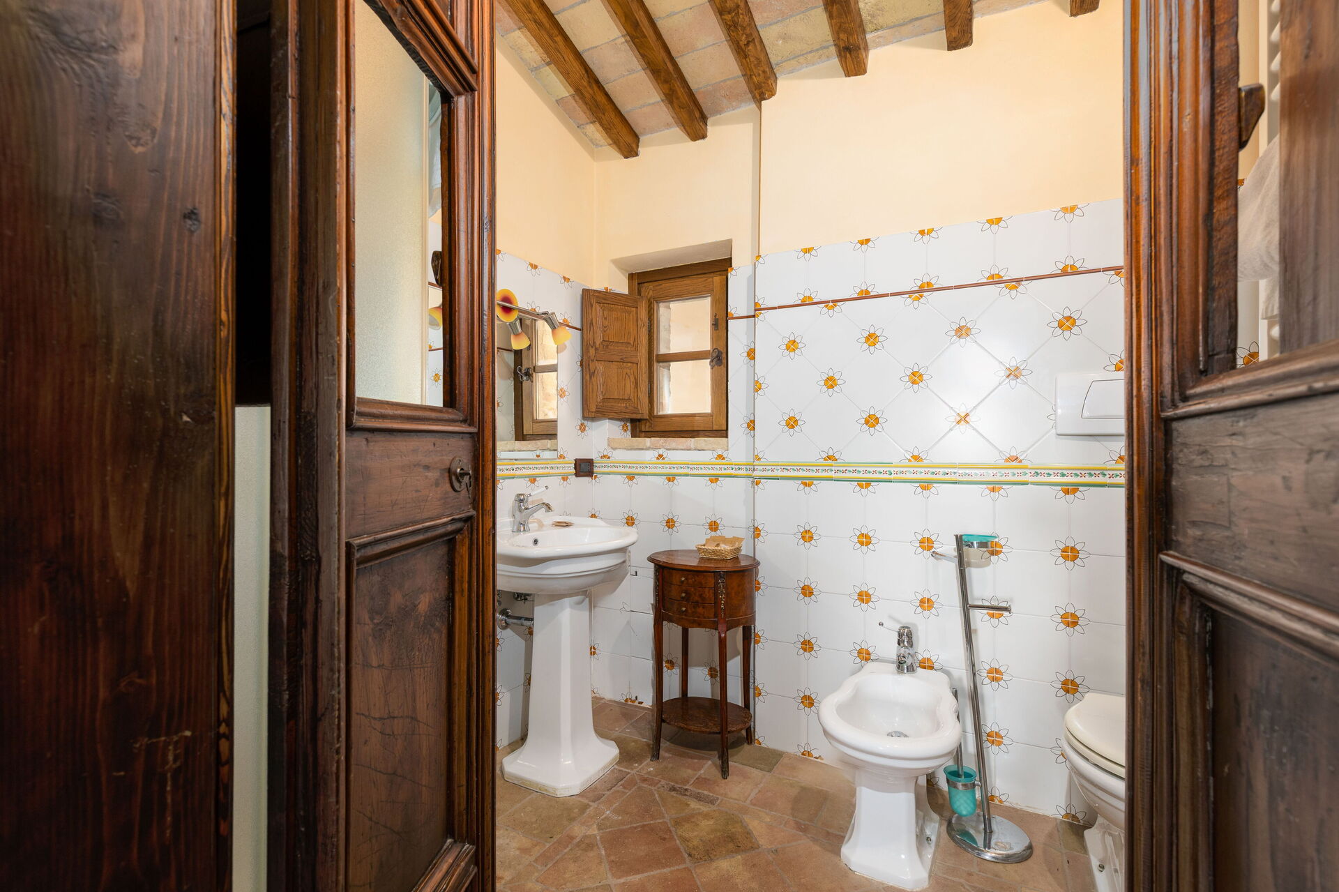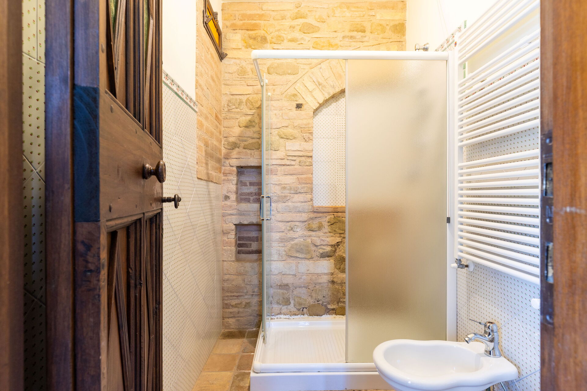First floor: large suite (air conditioning) with living room, double bed, single bed suitable for a child, access to 2 terraces with panoramic views, private bathroom with shower, passage bedroom with single beds, bathroom with shower and access to a double bedroom (air conditioning) with panoramic view of Assisi.
