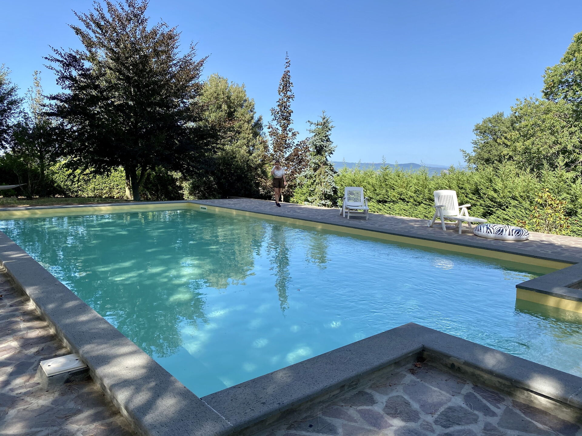 Wir waren mit drei Personen an diesem wunderschönen Ort. Das Haus bietet deutlich mehr Personen Platz. Die Ausstattung ist zweckmäßig und einfach gehalten. Hier gibt es sicherlich Verbesserungsmöglichkeiten; hat uns aber nicht gestört. Wifi funktioniert gut! Die Lage auf einem Berg bot uns ein traumhaftes Panorama. Der Pool ist richtig groß, wird immer sauber gehalten und man kann Schwimmsport betreiben. Luigi kommt sofort vorbei, wenn es Probleme geben sollte. Wir haben ihn direkt ins Herz geschlossen. Tipps: Stadtbesuch in Orvieto und unbedingt Motorboot fahren auf dem Bolsenasee (ohne Führerschein; Verleih in Capodimonte im Süden des Sees).