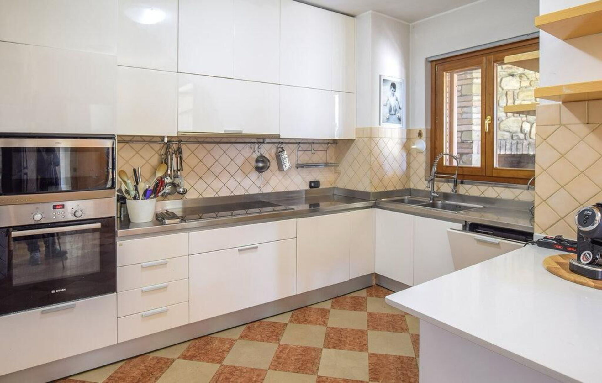 If you are looking for a place to spend your vacation, this peaceful oasis in the hills bordering Umbria and Tuscany won’t disappoint. Villa Paradiso has 4 bedrooms (one is a passageway room) to comfortably accommodate up to 8 people. The welcoming, modern interiors are equipped with all amenities.