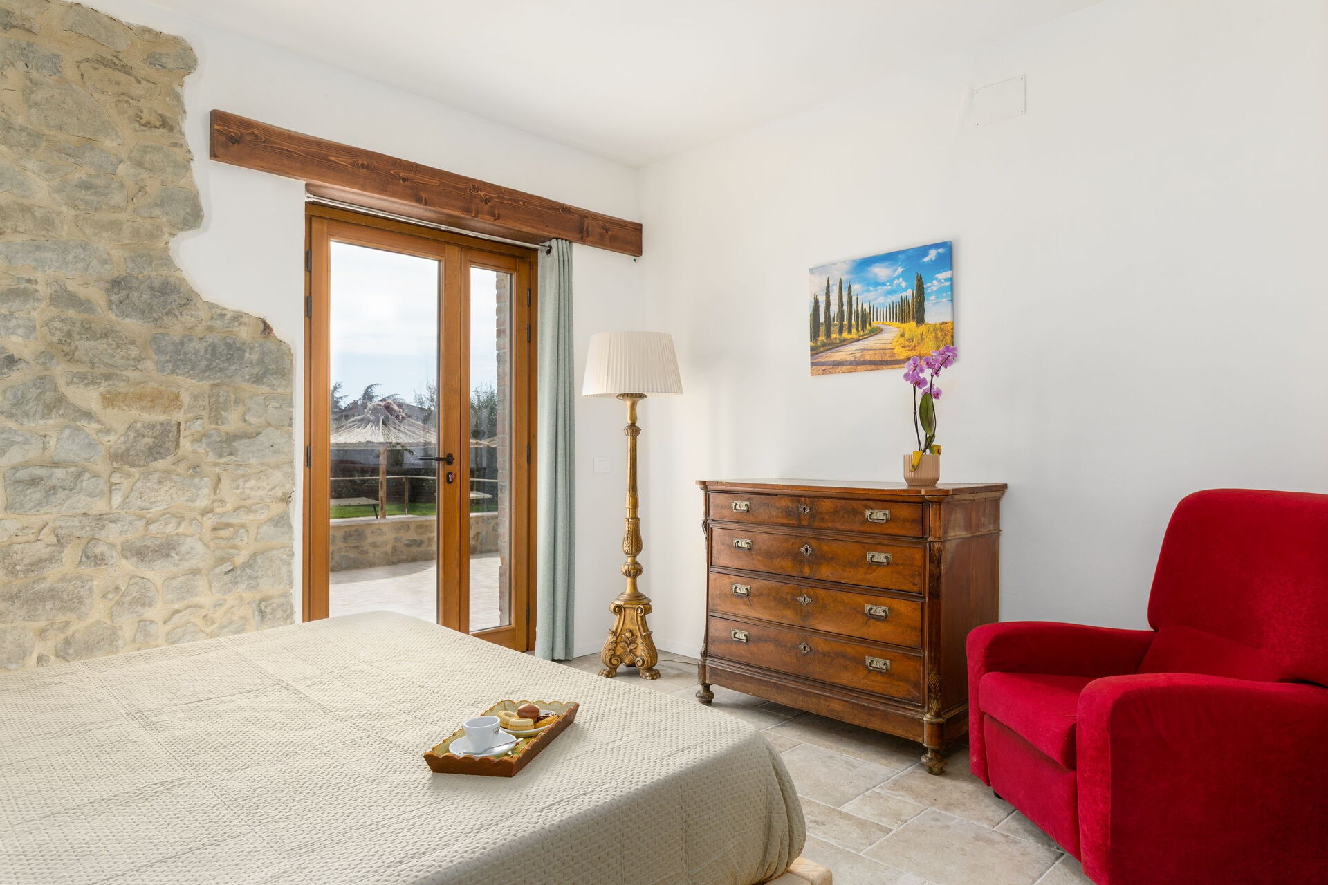 In the immediate vicinity there is the town of Tuoro, and a supermarket is conveniently located just 150 meters away. Lake Trasimeno has beaches and ferries for Isola Maggiore to complete your vacation in the peaceful countryside.