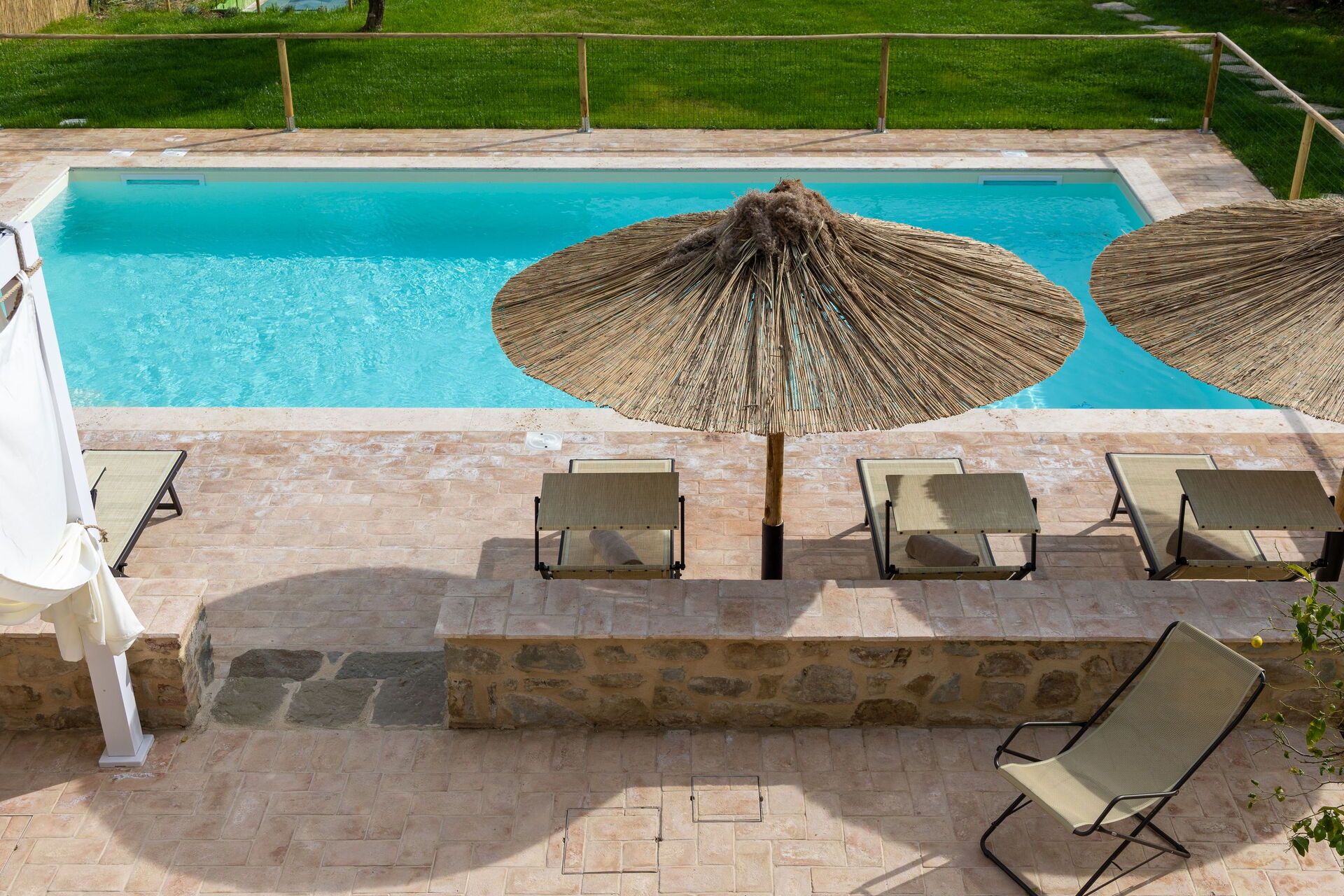 Renovation has created a welcoming villa that offers 3 bedrooms to comfortably accommodate up to 6/7 people; on the grounds there are a beautiful pool and well-tended garden at guests’ complete disposal. A brand new pergola is located on the terrace between the house and the pool, and is the perfect place to enjoy lunches and dinners in the fresh air.