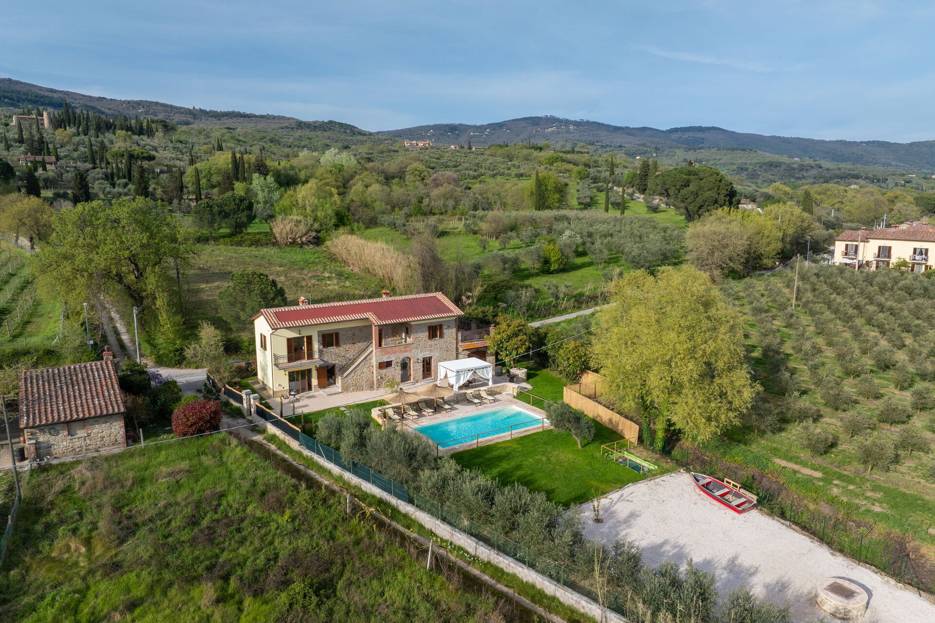 Villa Anna is strategically located on the border of Tuscany and Umbria, the most beautiful regions of central Italy. From here you can explore Siena, Cortona, Montepulciano, Arezzo, Perugia, Assisi, Spello, Gubbio, as well as Florence and Rome (there is train service to both cities from nearby Terontola/Cortona station).