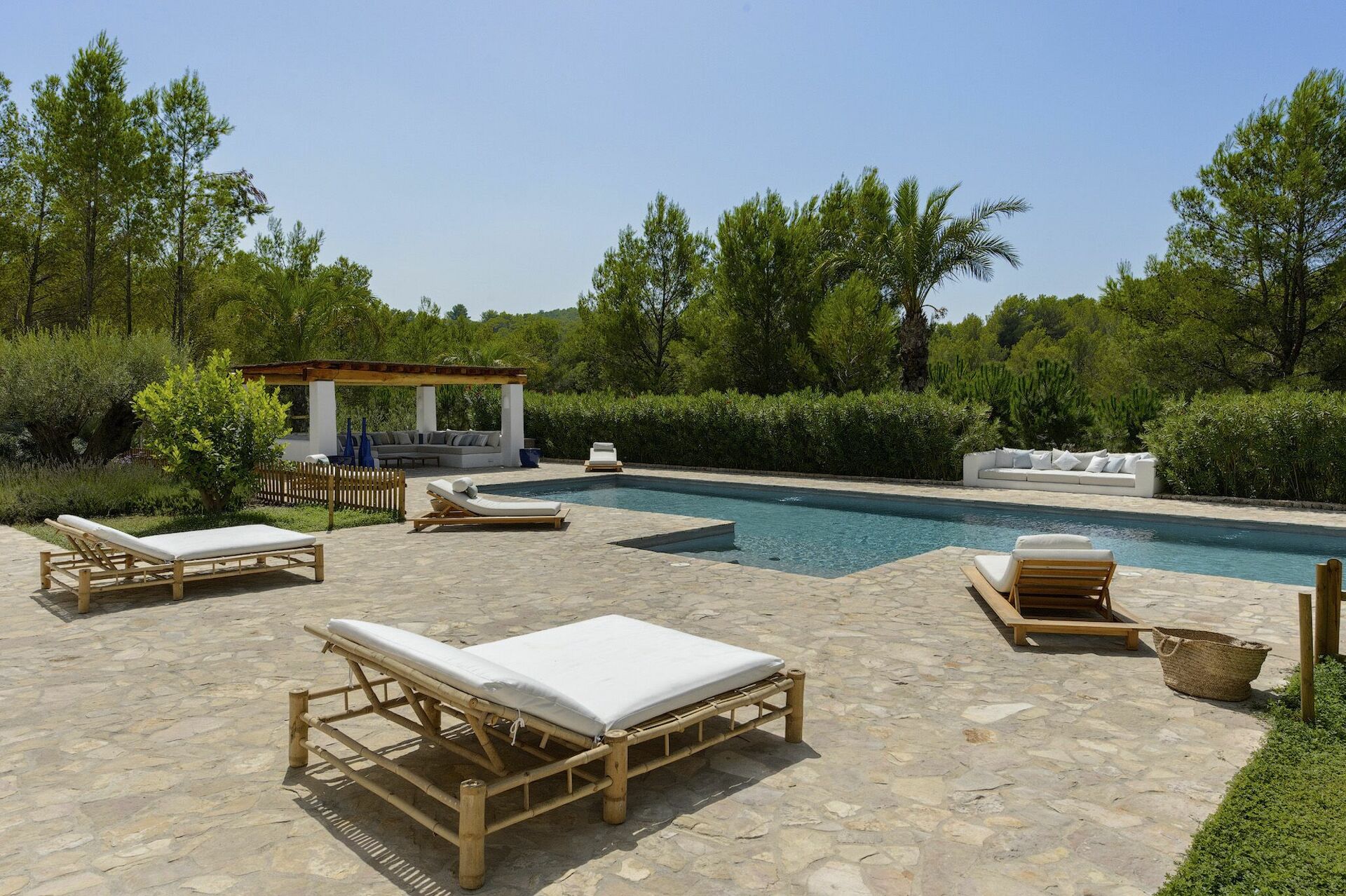 Luxury inland Ibiza villa rental with private pool, perfect for a relaxing vacation far from the hubbub and tourists.