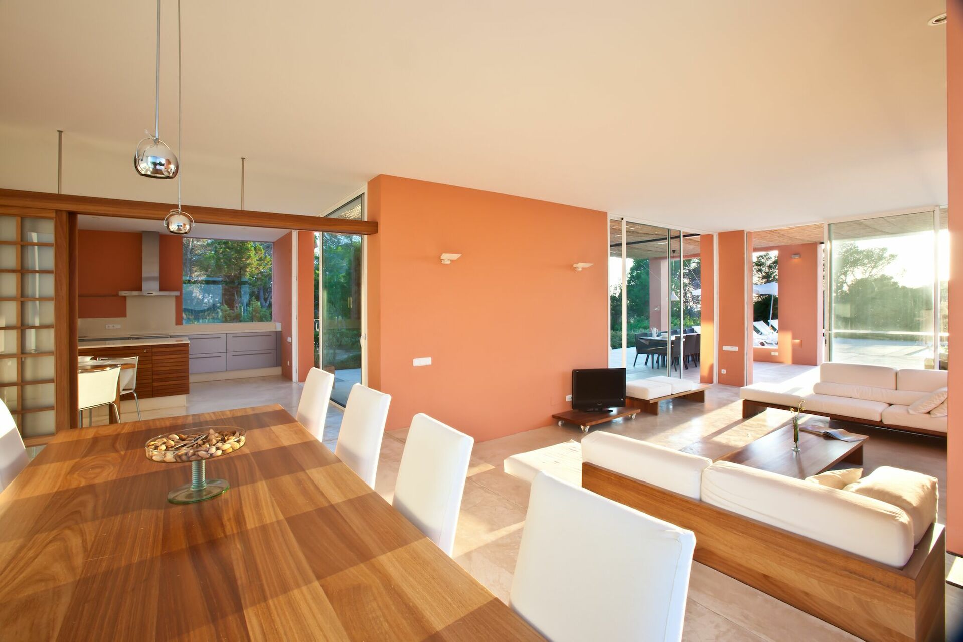 Pep Calo spans two floors, offers many common areas, and can accommodate up to 12 people in its 6 bedrooms, each with private bathroom. To guarantee utmost relaxation and convenience, the villa is equipped with all modern amentities. The minimalist interiors are tastefully furnished.